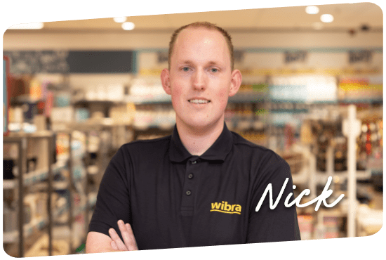 Hoe zou je de bedrijfscultuur omschrijven? Goede sfeer, gezellig, er wordt positief naar je gekeken, kritiek is altijd opbouwend, dat is prettig. Het is hard werken en er is altijd tijd voor een grapje. Wat vind je het leukste aan je werk? De klanten! Praatje maken met de klanten, mensen herkennen je, krijg leuke feedback over de klantvriendelijkheid. Klanten zijn blij als je zelf ook blij bent en inspeelt op de verschillende type mensen, ik maak het contact vaak luchtig door grapjes te maken, dan heb ik het helemaal naar mijn zin. Welke kansen voor groei en ontwikkeling zijn er voor jou bij Wibra? Ik word nu opgeleid als 3e man, dat is best heel snel gegaan, ik werk nu een half jaar bij Wibra, als je je zelf bewijst dan kan je je echt ontwikkelen binnen Wibra! Wat zou je willen zeggen tegen potentiële toekomstige collega's die overwegen om bij Wibra te komen werken? Solliciteer! Als je houd van een gezellige werkplek, van hard werken en van waardering, dan is dit de baan voor jou!